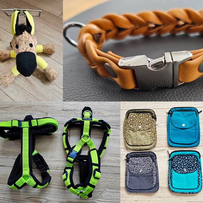 Geschirre, Halsbänder, Leinen in allen Größen von XXXS bis XXXL.